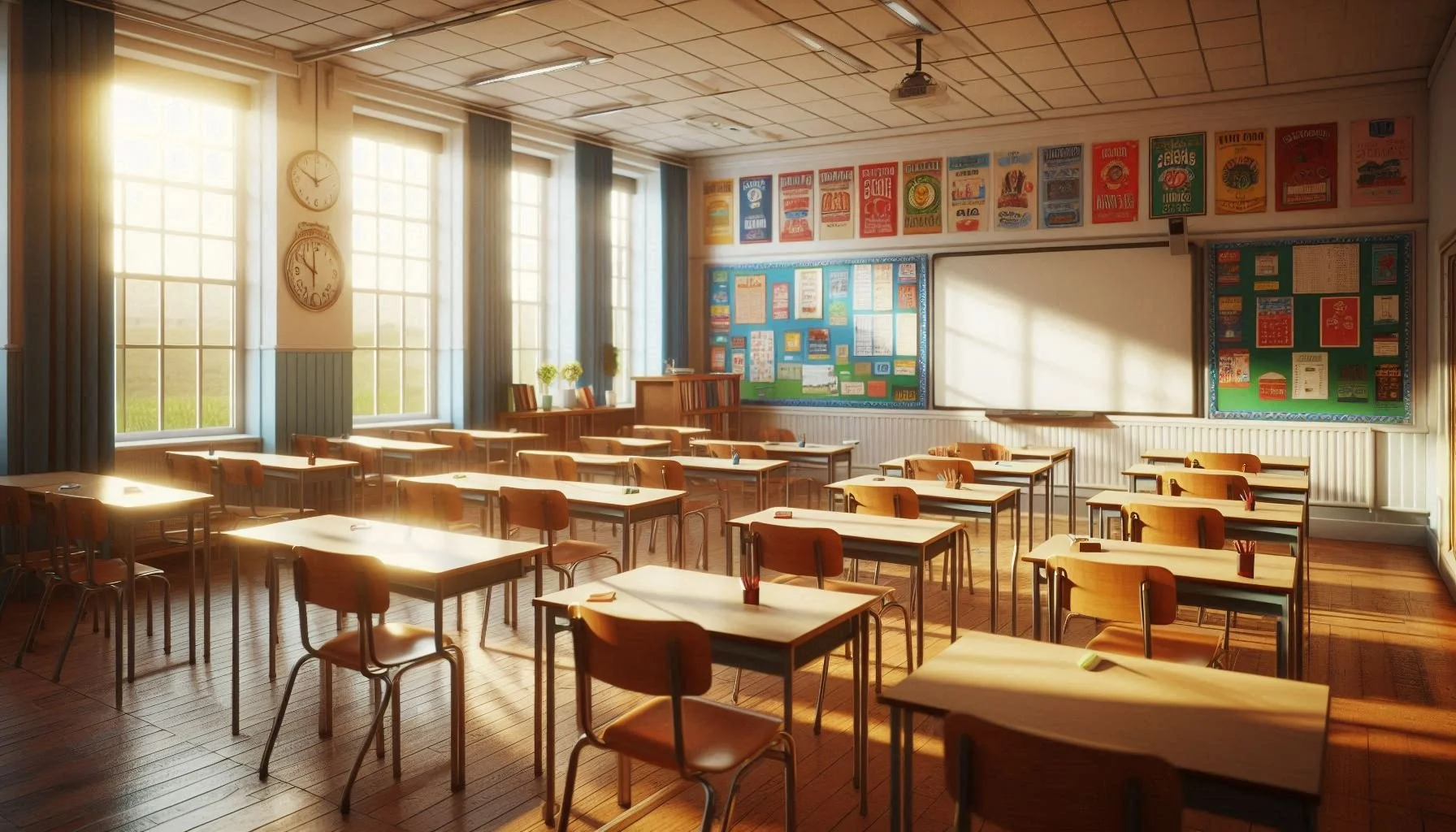 To truly understand the seating dynamics in your classroom, it’s wise to spend some time after school one day sitting in each seat to appreciate the varying experiences that your students may have. It’s important to experience firsthand what it’s like to view your display screen from different angles. The key thing to consider whilst doing this is the visibility and clarity of your presentation slides from different seats. Sit in each seat with a slide displayed on your board and ask yourself if you can read the text clearly? You might be surprised at how sunlight through your classroom windows can cause significant glare and light patches on your display screen. If it’s a bright sunny day, some seats might have a completely restricted view at certain times, and you might be unaware of this unless you have taken the time to sit in those seats yourself to experience it firsthand. This is where effective use of your window blinds becomes crucial. Additionally, remember that the glare and visibility issues can change not only throughout the day but also across different seasons. The position of the sun varies with the time of year, which can affect how sunlight enters your classroom. During certain times of the year, the sun might be lower in the sky, causing more direct glare on your display screen.
